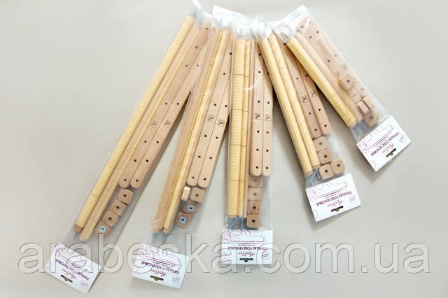 П'яльці виготовлені з екологічно чистої деревини бука. Розмір змінюється завдяки додатковим отворам у рамі. Легке кріплення тканини за допомогою кліпса. Зручні дерев'яні баранці.